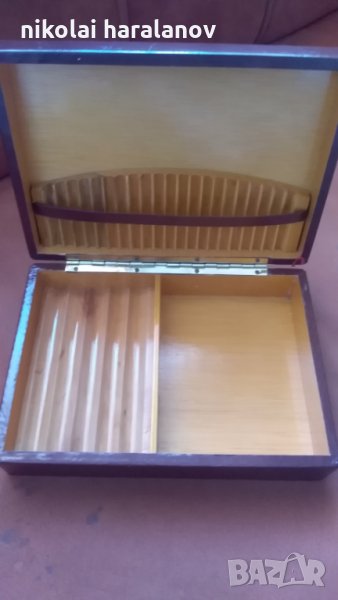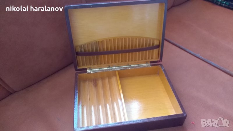 Продавам настолна табакера за цигари, пури и пренадлежности. Размери ширина 22 сантиметра, дълбочина 15.5 сантиметра и височина 6 сантиметра. Цена 13 евро.