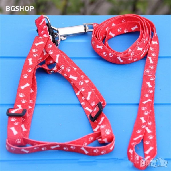 Нагръдник и повод за куче или котка 2 в 1 - Червен → Обява 26292845