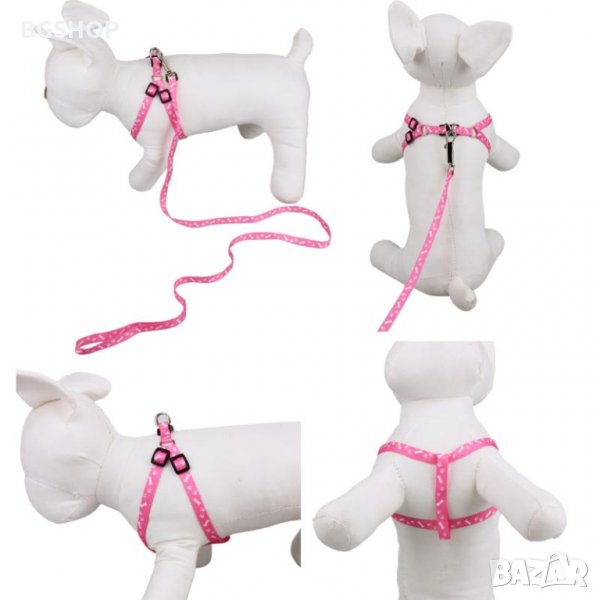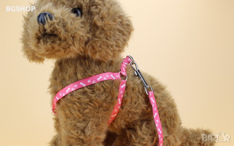 Нагръдник и повод за куче или котка 2 в 1 - Розов → Обява 26292846