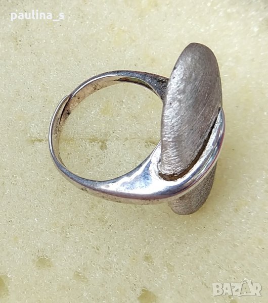 сребърен пръстен, проба 925, лазерно матиран, масивен. Моделът е семпъл, но много стилен, единична бройка. Размер 17мм, но се регулира. Не се продава на грамаж!