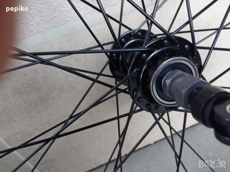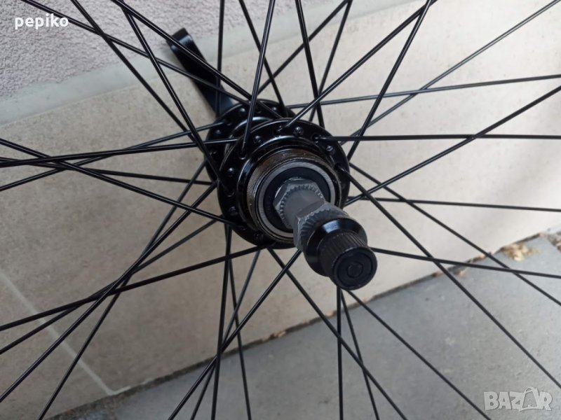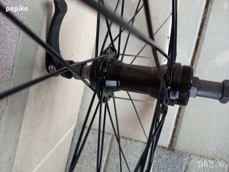 НОВА алуминиева шосейна задна капла HICKER MUSTANG 28 цола с капсуловани лагери,задна алуминиева главина FORCE с капсуловани лагери за вибрейк спирачки и 36 отвора,главината е на резба за 6-7-8 венеца,дължина на оста 135 мм. от външните гайки,алуминиева двойностенна усилена шина алуминий 6063,ширина на шината от вътре 31.5 мм. ширина от вън 20 мм.главината е с автомат за бърз монтаж и демонтаж,черни емайлирани спици,подходящи гуми до 28,35с.отличен ход,невероятно голяма инерция.