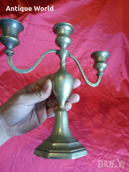 Красив Стар Бронзов Свещник ТРОЙКА .Състоянието е видно.