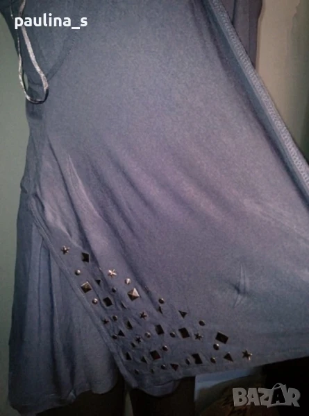 1️⃣. Колаж / XL / 3XL - "Express". Цената е крайна 29,99лв / 15 евро. Декорирана памучна с пайети туника, с изрязан гръб. Моделът е с разкроение в долната част. Материята е органичен памук, изключително фино трико. Уникална дреха, без дефекти.