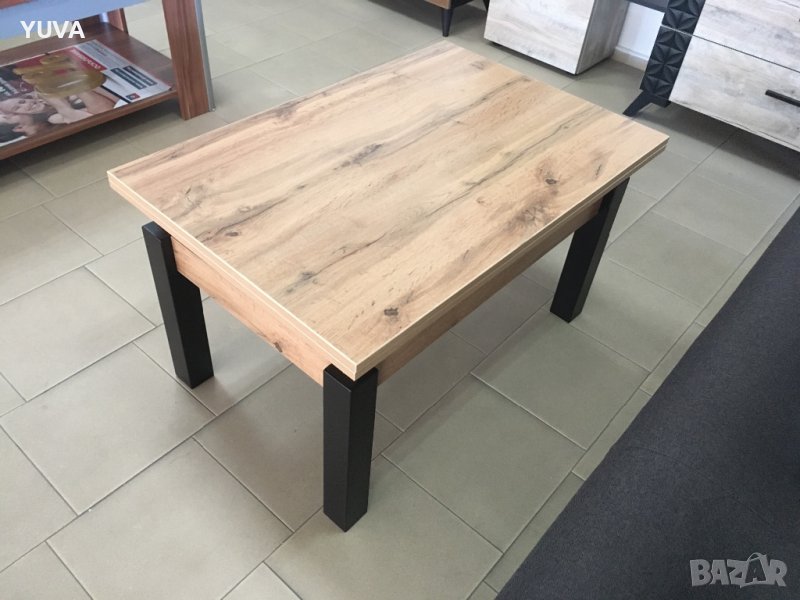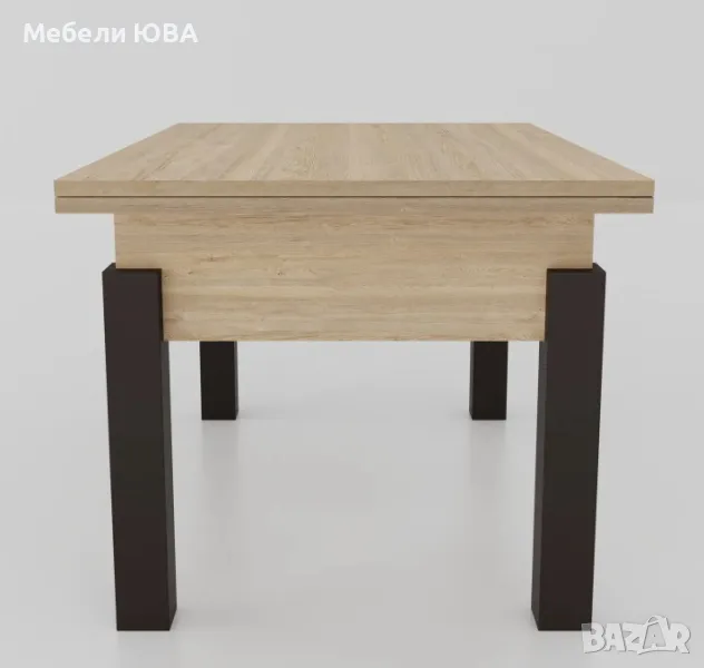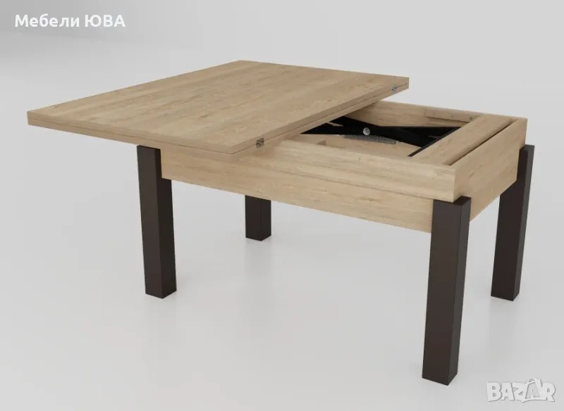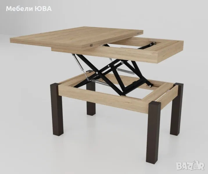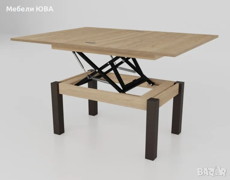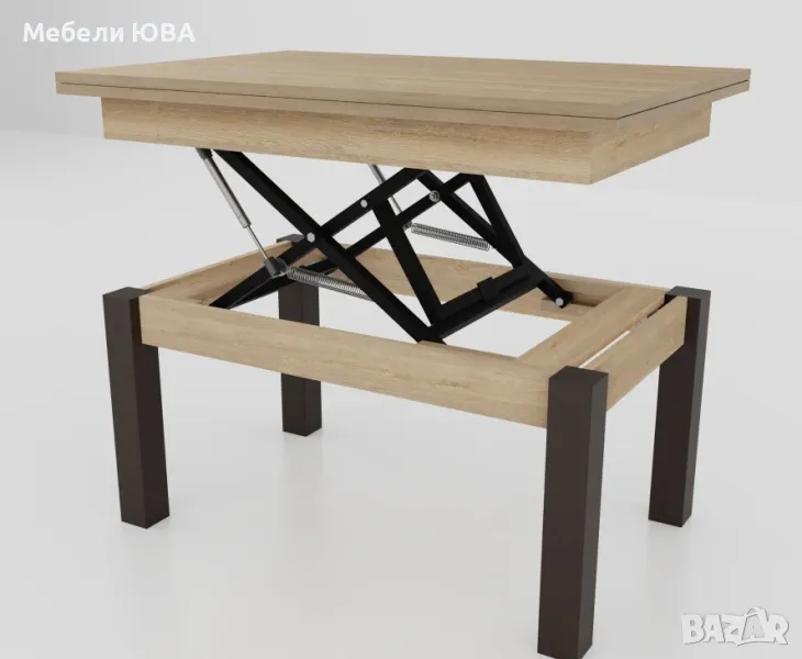 Масата се трансформира от холна в трапезарна с помощта на повдигащ механизъм с газов амортисьор и пружина.