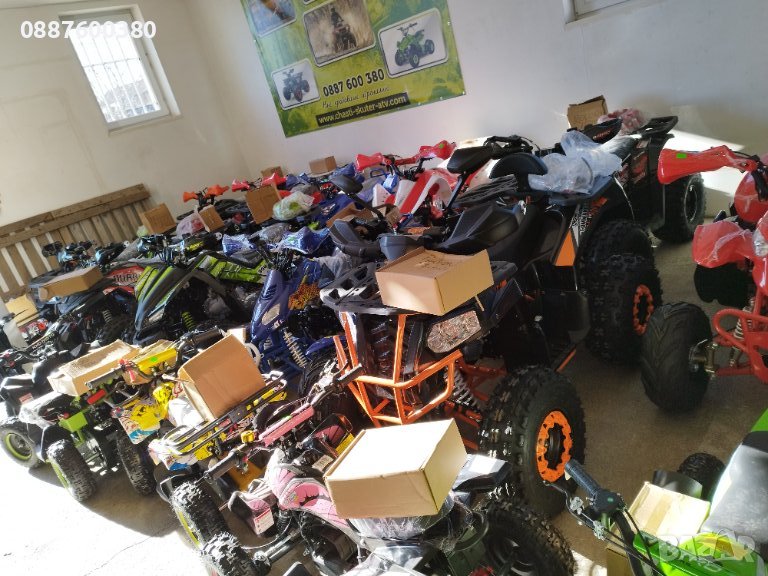 СКЛАДЪТ се намира БЛИЗО до ДЖАМБО и Гуми Диана на влизане в София от БОТЕВГРАДСКОТО ШОСЕ и предлага РЕАЛЕН АСОРТИМЕНТ от НАД 40 модела за малки и големи, НАЛИЧНИ на склад в София-Кубратово от всички кубатури: 50-110-125-150-200-250-300-350сс. на цени разпродажби цени от 550лв до 4500лв. С ДДС. Които не иска да бъде жестоко измамен с АТВта с ИЗТРИТИ КУБАТУРИ и ЗАВИШЕНА ЦЕНА пратени по Еконт , Спиди и др., Нека ЗАПОВЯДАТ на място на склада ни в София.-КУБРАТОВО да разгледате и пробвате и да си изберете правилно АТВто, което сте си харесали, както и да се убедите сами , че ПРОСЛОВУТИЯ ПЕЧАТ с КУБАТУРАТА съществува на всеки двигател , освен в случаите когато той е бил изрит или заличен и се опитват да ви измамят както с кубатурата, така и с цената и всички останали технически характеристики и несъществуваща гаранция, която не важи без касов бон и фактура , които задължително трябва да се издават при закупуване на ново АТВ, а не измислени договори за покупко-продажба , каквито всеки може да ви надраска, те не важат пред ни една институция в България !!! Гарантираме НАЙ-ДОБРИТЕ ЦЕНИ и НАЙ- БОГАТ ИЗБОР !