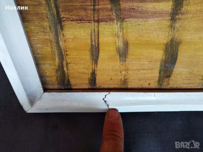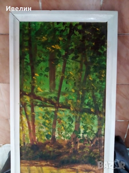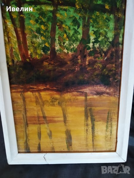 картина-пейзаж,масло на шперплат с размери 52см/24см,в дървена рамка /забележка/ с размери 56см/26см.