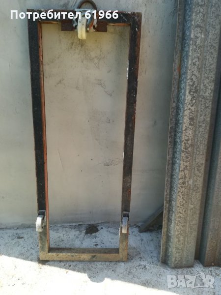 Масивна метална конструкция с ухо за теглич на колелца с размери 124 см на 48 см. Вземане от място на 9 километра по пряк път от Габрово.