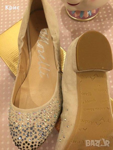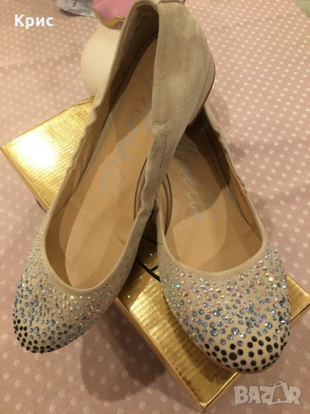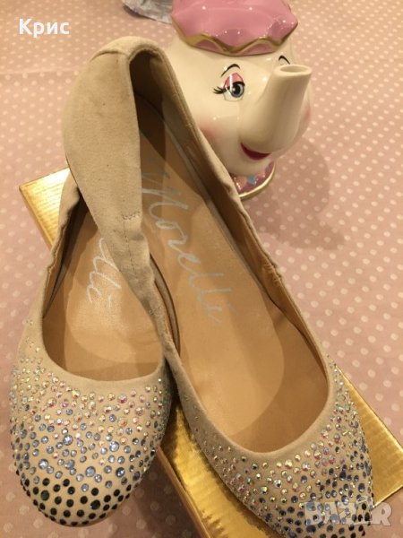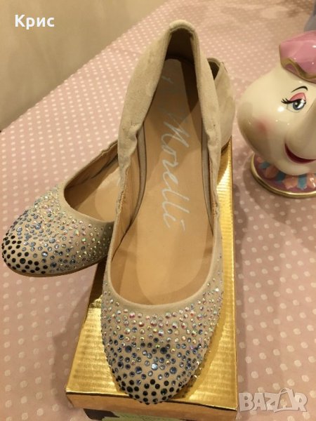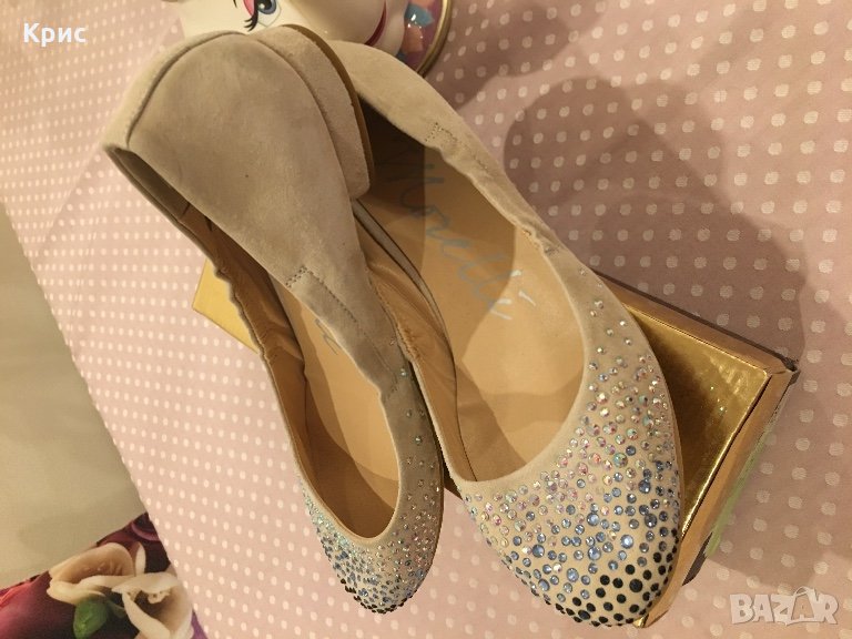 Цвят екрю,в предната част обсипани с камъни сваровски
