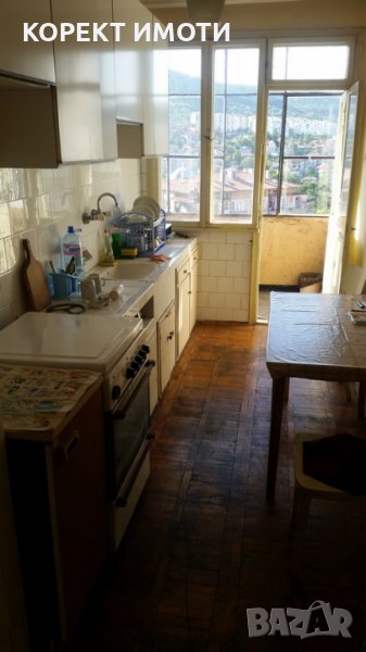Тристаен тухлен апартамент в жилищна кооперация в района на Сладкоопа на четвърти етаж. Състои се от коридор, обширен хол с преход към кухня, две самостоятелни спални, втори коридор с отделни санитарни помещения и килер, две големи тераси. Апартамента е с подово покритие паркет в стаите и мозайка в коридора. Голямо жилище без подобрения, но в добро поддържано състояние. Към жилището има изба и таванско помещение с размери на спалня над апартамента. За огледи и информация на тел. 0988391988