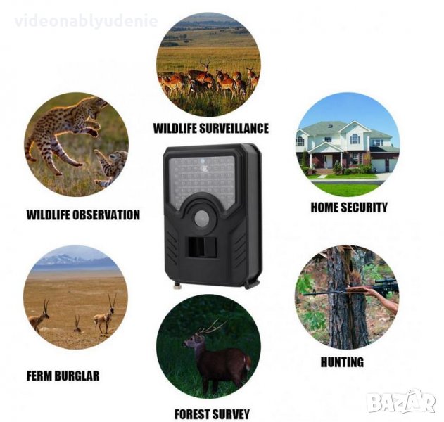 Тази камера е идеален продукт за охрана на жилища, наблюдение на складове и наблюдение на диви животни с камуфлажен външен вид и ергономична форма. Тя е удобна за инсталиране или закрепване, може да се използва за снимане и пренасяне на видео файлове.