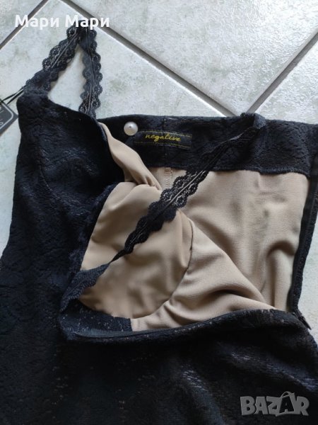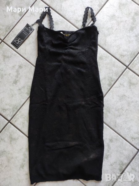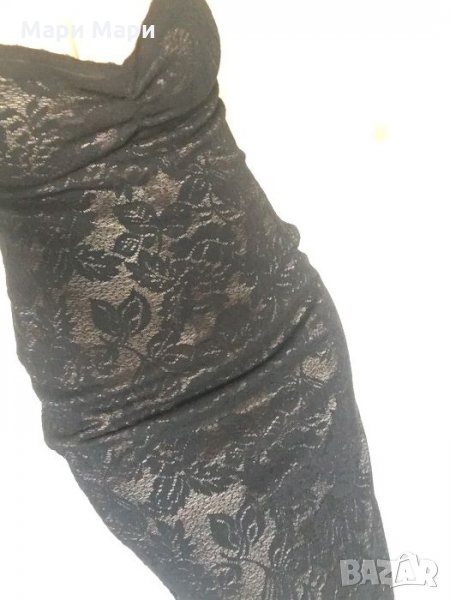 Елегантна рокля от дантела има подплата. Стои по тялото, черен цвят, много добре оформя.