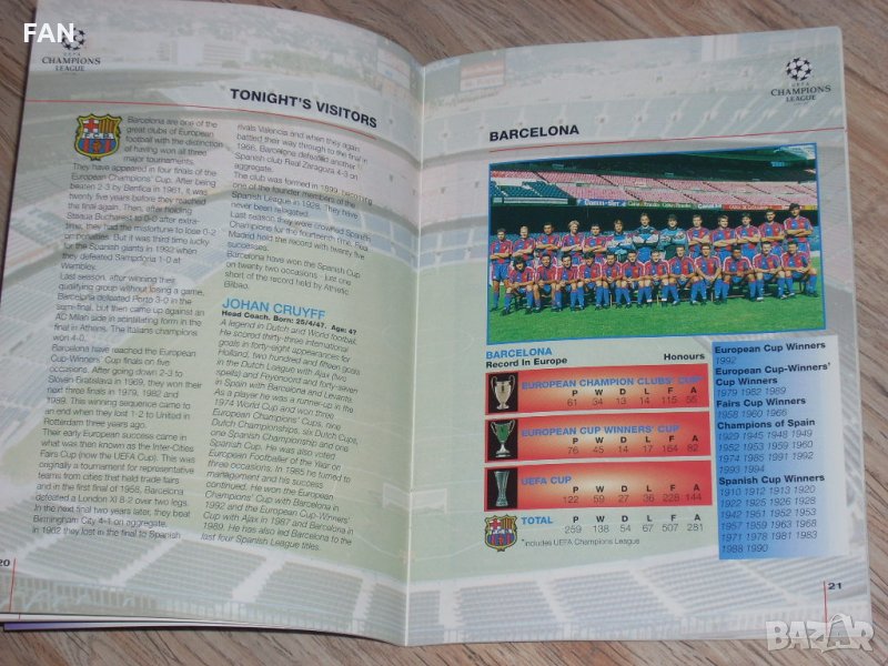 Манчестър Юнайтед - Барселона оригинална футболна програма Шампионска лига 1994/95 с Христо Стоичков → Обява 26331853