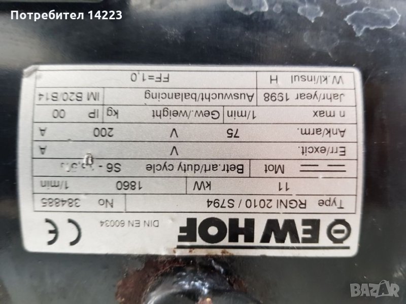 Мотора е 80 V 11 Kw. 200А 1860 оборота.