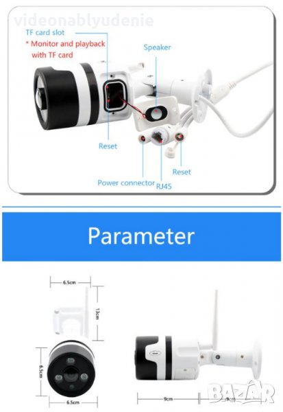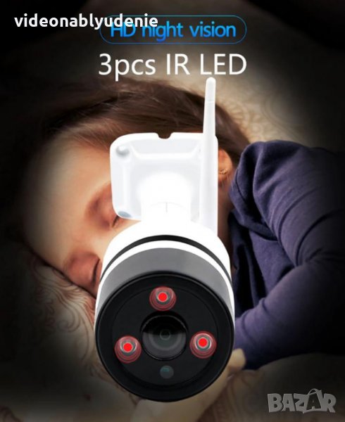 Видеокамера от 5-то поколение с InfraRed подсветка от 3 броя ново поколение LED ARRAY диода, осигуряващи чиста картина и голямо работно разстояние през нощта. Наблюдение през Интернет чрез смартфон.