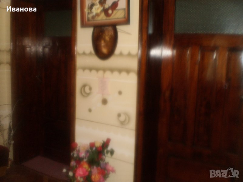 Втори етаж - хол - север /снимка с библиотека/ от него се влиза в три спални, едната зад четирикрилна портална врата /портала може да се сгъне до стената и да изглежда, че го няма, врати полирани, под на целия етаж - масивен дъбов паркет в отлично състояние, голяма тераса от запад. Стените са с дебелина тухла и половина, през лятото не се нуждае от