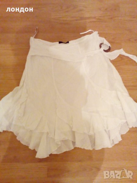 Дамска пола /къса/ от Дължина-50см,ширина горе-40см,ширина долу-60см.Цвят бял. 63