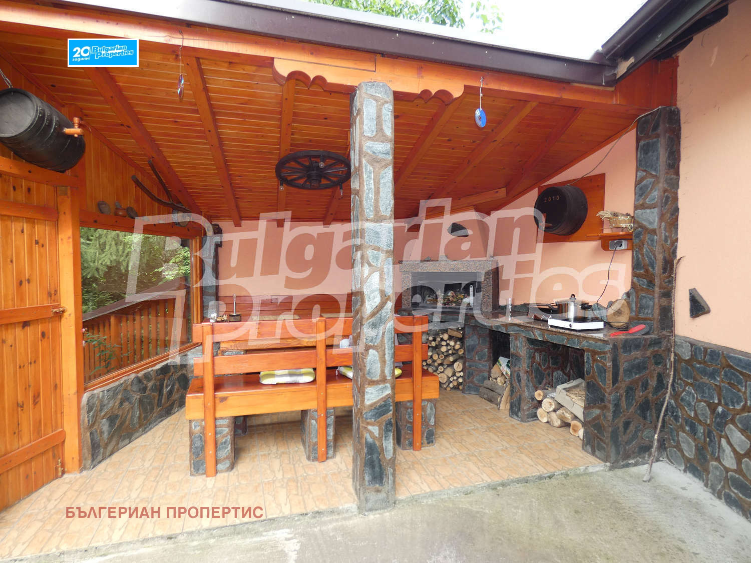 Масивна сграда (Ytong) - лятна кухня-механа (36 кв. м.) - битово обзаведена, с камина, санитарно помещение и топлоизолация - таван и фасада