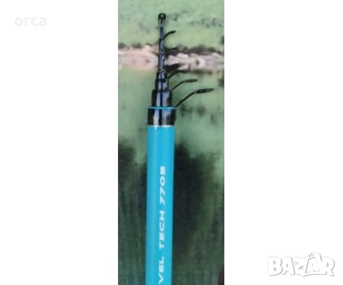 Телескопът е с удебелени снадки за по-големи улови, снабден с удобен камшик и антиплъзгаща дръжка. Включва калъф за лесен транспорт и съхранение. Предлага се с два върха – плътен карбонов/жило и кух карбонов/за ластик/, с акция до 30 гр.