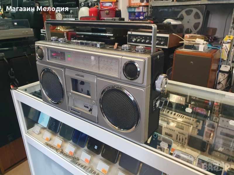 Моделът се отличава с големи и мощни говорители, които осигуряват плътен стерео звук. Дизайнът е класически за епохата – комбинация от здрава пластмаса и метални детайли, които придават истинско ретро излъчване. Идеален за колекционери или за ценители на аналоговото радио и касетния звук.