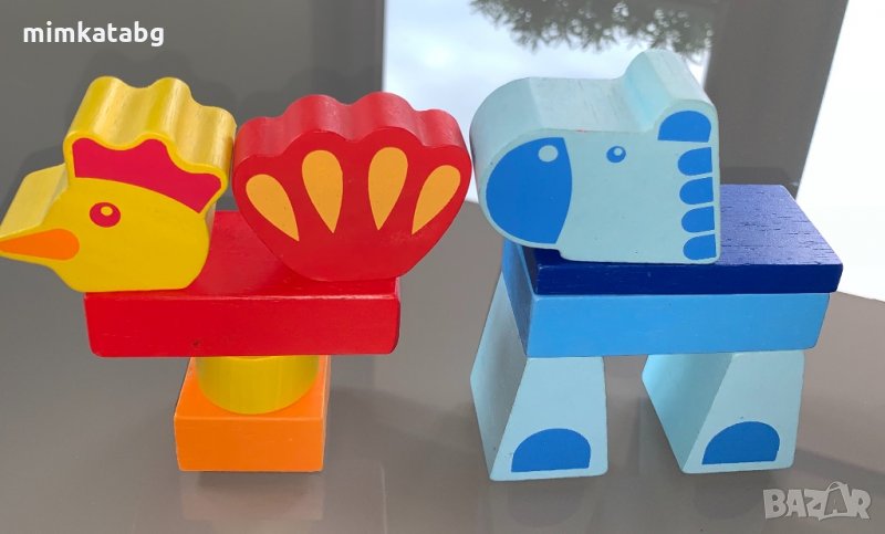 -Конструктор Djeco - 29 дървени фигурки с различни форми и размери, с които децата могат да създадат 6 животинки. Частите лесно се сглобяват. Могат да се използват и като забавна декорация за детска стая.