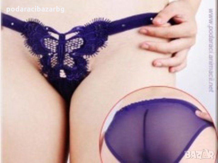 Бикини - дантелена пеперуда! Красиво, секси, но и удобно дамско бельо. Пеперудата е от плътна и стабилна дантела, а останалата част е достатъчно разтеглива, както се казва, могат да станат на жена от 40 до 80 килограма. Налични са в черно. Размер -универсален