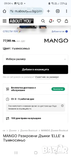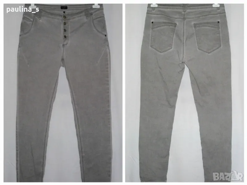 1️⃣. Колаж / L / 2XL - "Elle by Mango". Цената е крайна 39,99лв / 20 евро. Еластични плътни дънки с избелващ ефект, платът е зимен еластичен и покрива няколко размера. Моделът е обран, съобразено с размера 5 pocket Denim, джобове с филетки отзад и монетно отпред. Не са нови, една бройка, без дефекти.