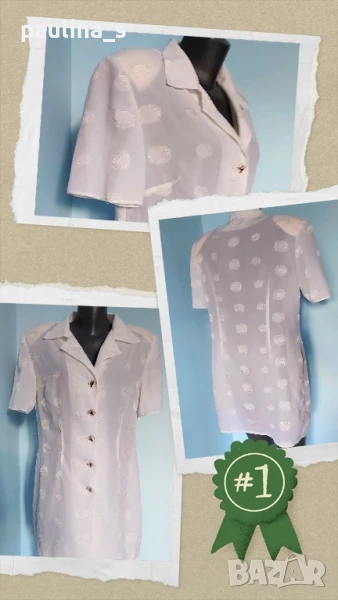 2️⃣. Колаж / Ръчно изработена туника тип сако по модел на Burda. Цената е крайна 39,99лв. Втален силует, с подплънки и подлепващо. Материята е копринена органза, с флорален седефен принт, немачкаема и много ефектна. Копчетата са дизайнерски. Шила съм си я за повод, но не е обличана. Само цената на материала - платът и другите неща е по-висока от посочената.