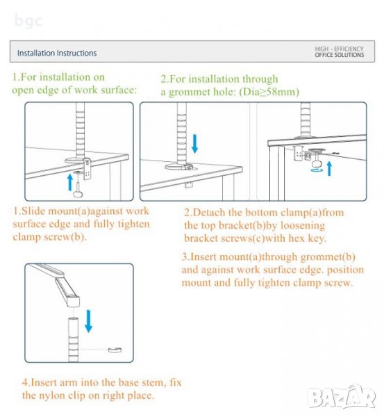 Инсталиране: затягане на работния плот или монтиране на шлем