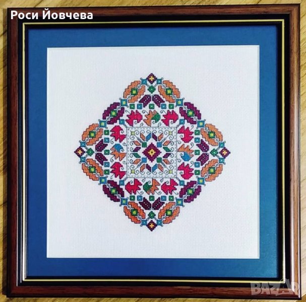 Софийска елбетица, бродирана част 17/17 см, с рамка 26/26 см