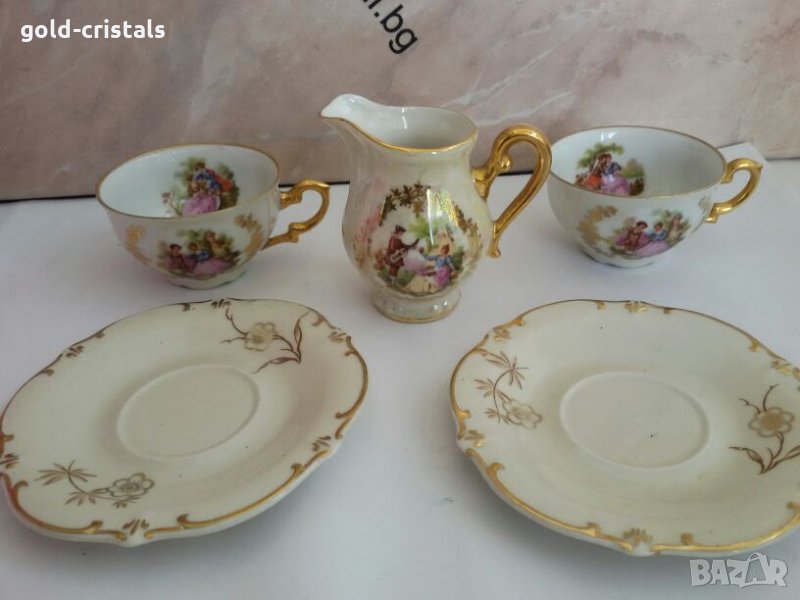 старинен порцелан латиера чаши за кафе цвят слонова кост с позлата маркирани бавария латиера и два сета чашка с чинийка бароков стил сервиз комплект сет лот ретро арт декор винтидж колекция стари старинни антикварни предмети обзавеждане за дома и семейството подходящи за подарък за ценители и колекционери