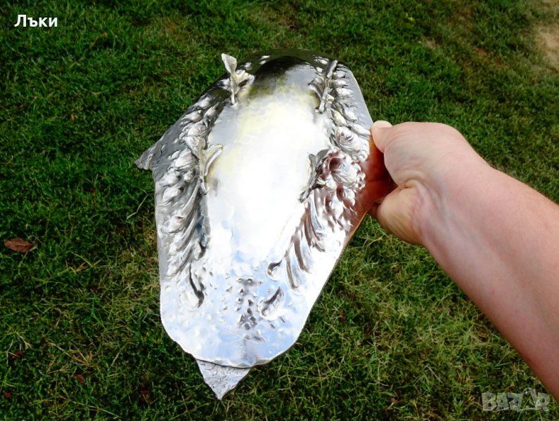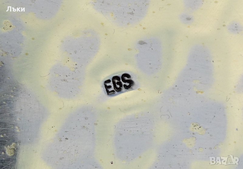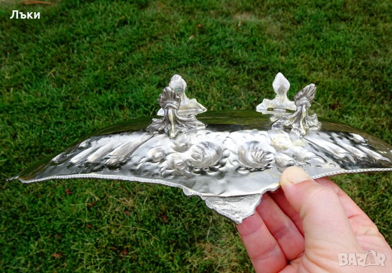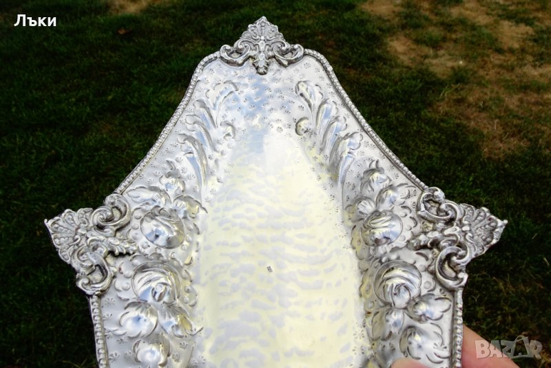 изработка от месинг,дебело посребрена с висока проба сребро.Маркирана EGS.Цялата е декорирана с