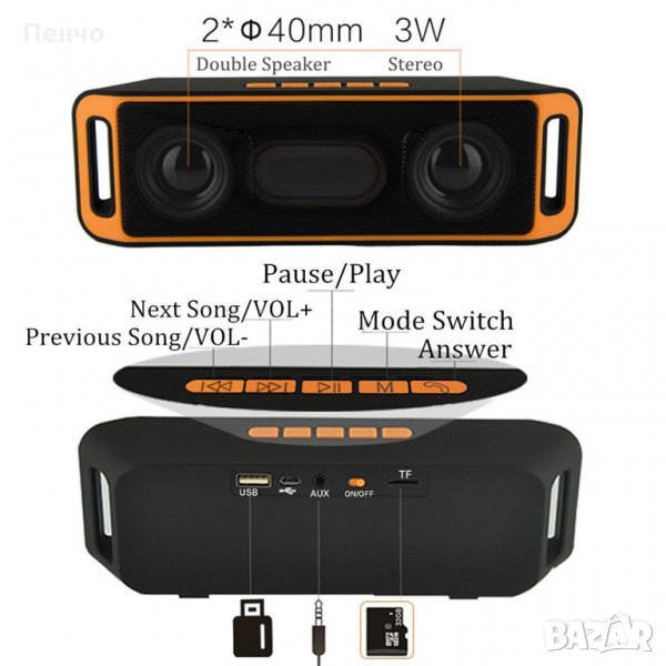 Този Bluetooth говорител е идеален за дейности на открито и на закрито.Става и