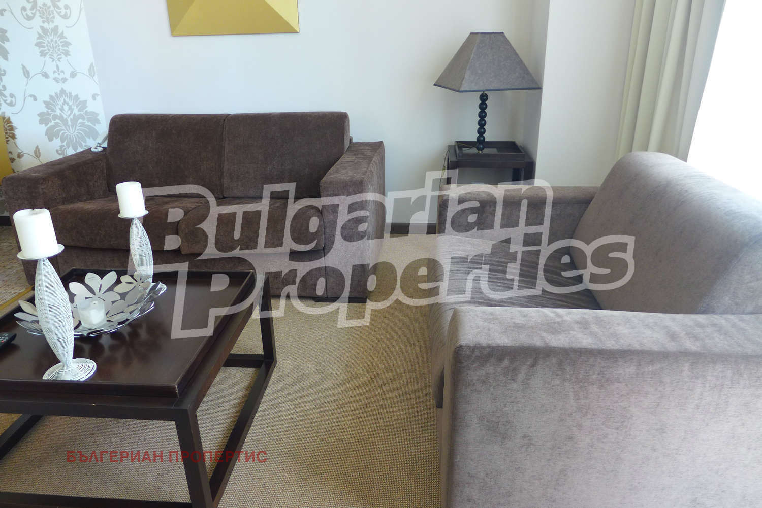 Двустайният апартамент, който описваме в настоящата оферта, се намира на пети етаж в луксозен комплекс от затворен тип Роял Бийч Барсело (2007 година). Жилището е с обща площ от 78.45 кв.м., от които чистата площ е 66.48 кв.м. Завършено е с подови настилки теракот и мокет, стени латекс и ПВЦ дограми. Кухнята е снабдена с котлон, аспиратор, фурна, хладилник, съдомиялна; холът - с ТВ сет плазма, маса и 4 стола, разкошна мека мебел - диван и фотьойл, където могат да спят още двама човека (луксозните мебели в дневната са по поръчка). Спалнята е обзаведена с гардероб, климатик, тоалетка, ТВ сет плазма, а банята с тоалетна е с вана и аксесоари. Апартаментът разполага с един балкон с красива гледка. Снабден е с кабелна телевизия и интернет и се отоплява чрез централни климатици. Годишната такса за поддръжка на комплекса е 12 евро / кв.м.