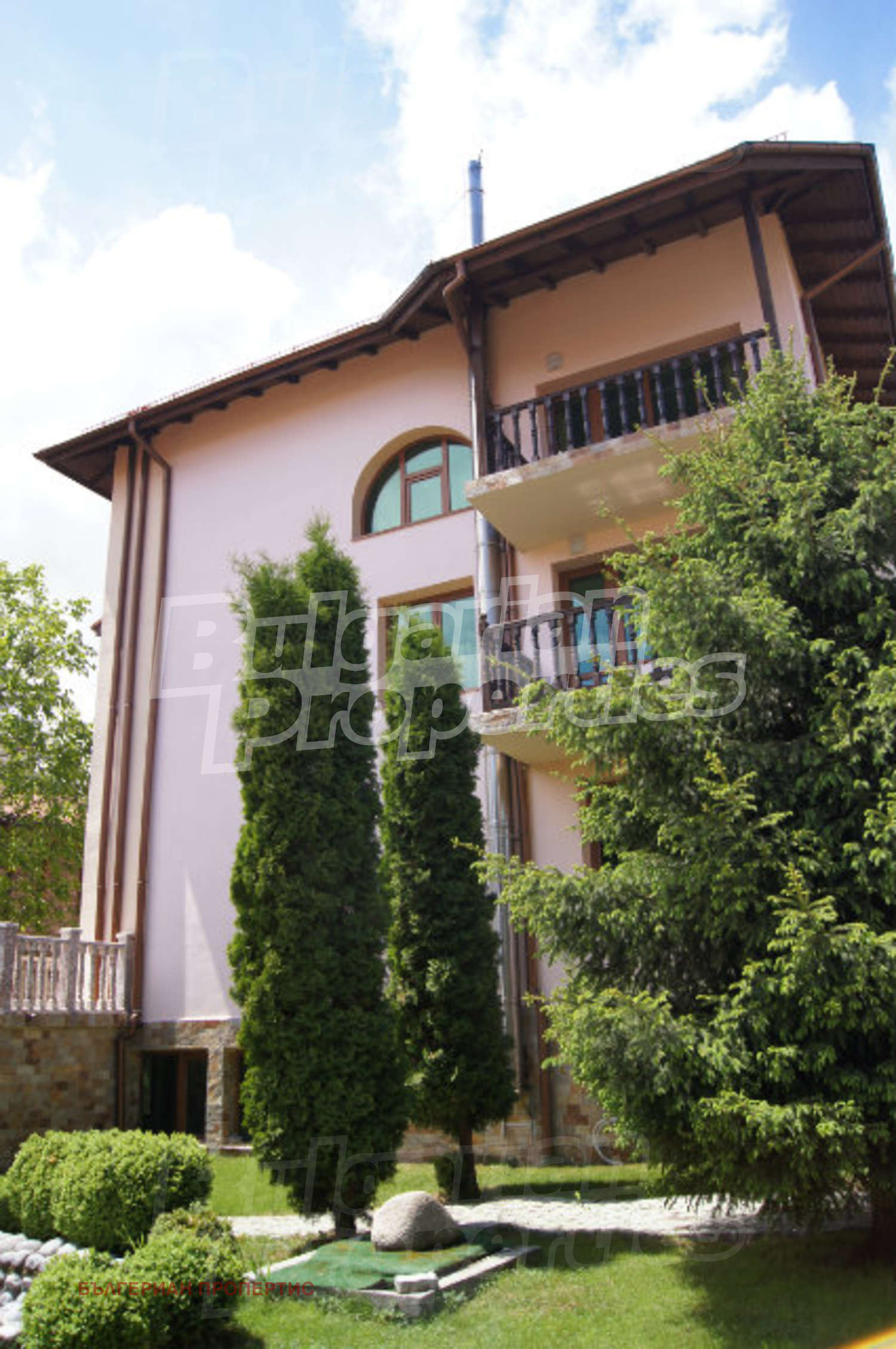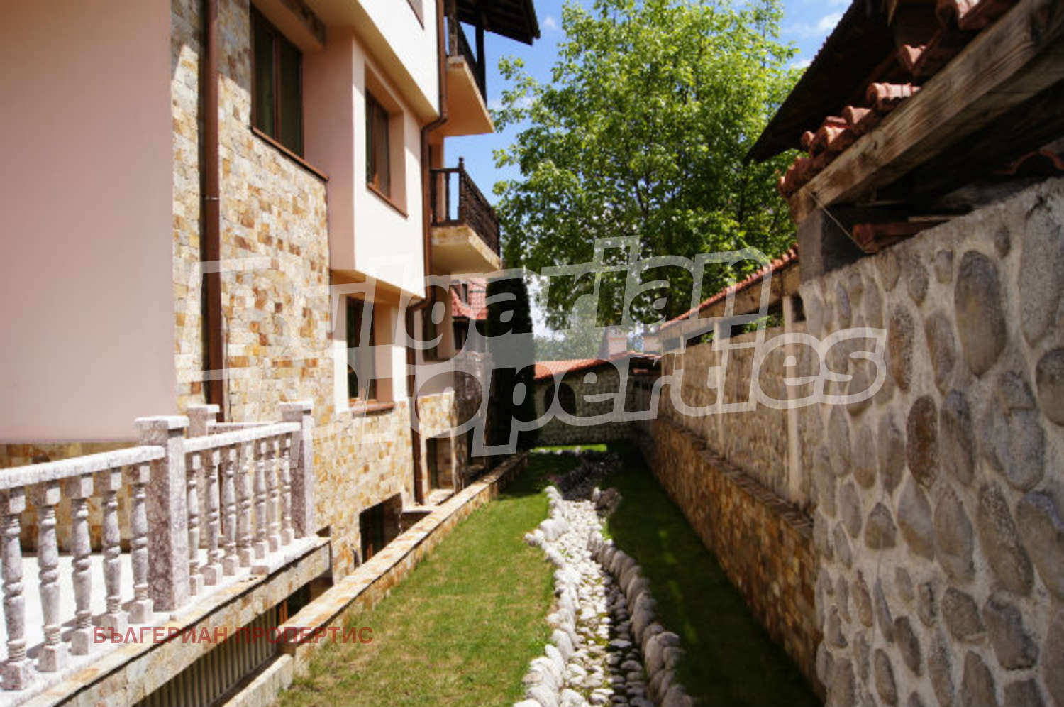 Дворът е с паркинг за 4-5 автомобила, барбекю кът, декоративно фонтанче, поддържани храсти и зелени площи. Имотът се намира на ул. "Захари Стоянов" в Банско. Разположен e в тиха и спокойна зона на курорта, с чудесни изгледи към Пирин, на 900 метра от първата станция на кабинковия ски лифт, с която се изкачвате на височина от 2600 м. до най-високите, покрити със сняг писти, съоръженията за freestyle и пистата за биатлон и на 10 минути пеш от идеалния център на града. През зимния сезон, който продължава от средата на декември до средата на април, гостите на Банско могат да се наслаждават на добрата мрежа от писти, включително и на черната писта Алберто Томба, започваща от 2560 м. Пистите разполагат със съвременни ски съоръжения, с машини за сняг и с различни степени на трудност. През летния сезон курортът предлага широка гама от дейности като планинско колоездене, планински преходи, конна езда и др.