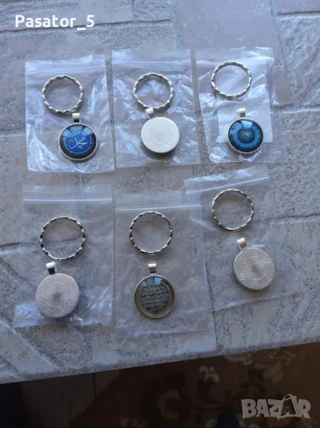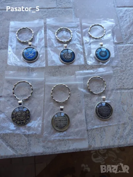 1. Ключодържатели са от неръждаема стомана.На тях е изписана една от най силната молитва (dua) "AYЕТ -TEL KURSI" ,която е от КОРАНА изписана е на арабски език от една страна ,а от другата страна е изписано "ALLAH".