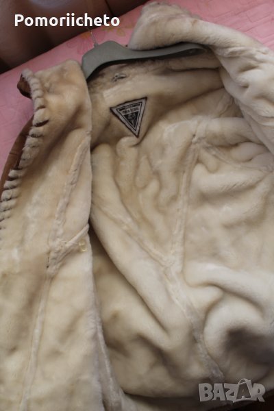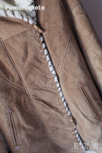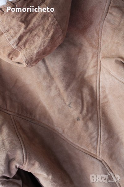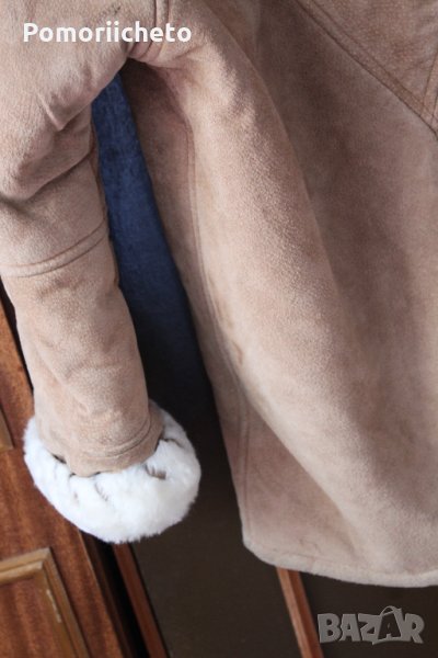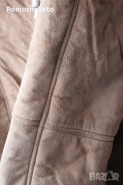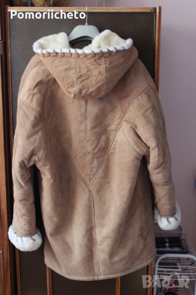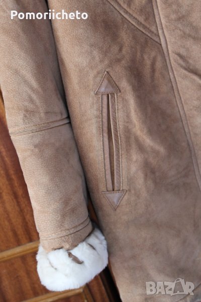 Носено е малко, като цяло състоянието е чудено с изключение на няколко малки петънца, които съм заснела на последните два колажа. На лактите на ръкавите има малки потъмнели зони, на гърба под качулката и над единият ръкав от задната страна има тъмни петънца. Не са особено забележими при носене, не съм се опитвала да ги премахна, вероятно могат да се почистят, но нямам опит с чистене на кожа. Изработката е изключително качествена, палтото е невероятно приятно и меко на допир, в същото време е стабилно и тежко и ще топли перфектно през студените зимни месеци.