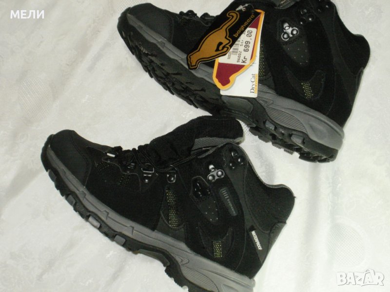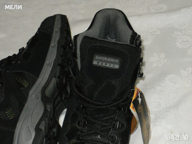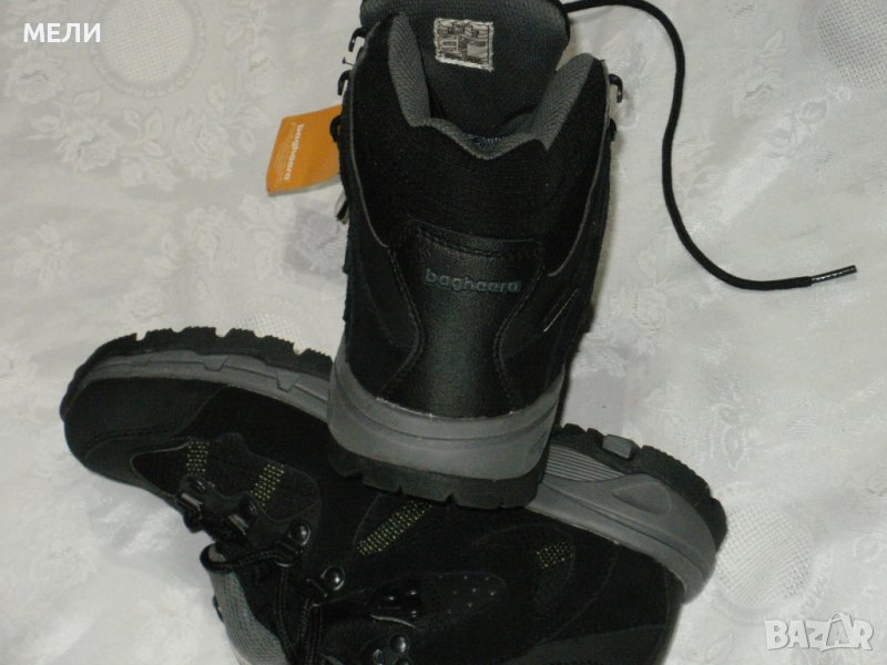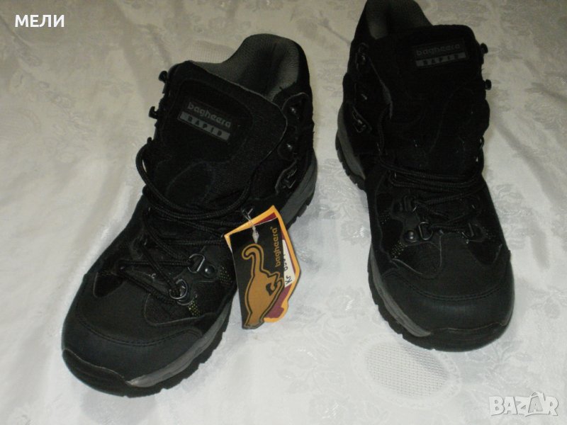 Обувките са на BAGHEERA, оригинални, нови, с етикети. Не пропускат вода, със специална мембрана са, модела е "dry cat". Носа е подсилен, материалите са естествена кожа и специален текстил. По номер са 38, дължина на стелката 24см. Цветовете са като на снимките, черно и сиво с дискретни включвания на зелено. Супер са за туризъм но стават и за града. Със стабилна подметка са, имат и голям грайфер.