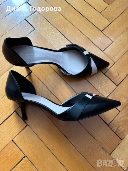 Елегантни обувки шампанско и черно Charles & Keith, височина на тока 6 см. Нови. Цена 55 лв.
