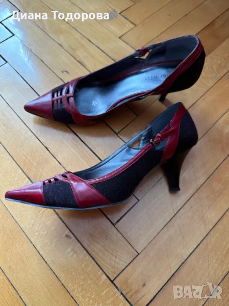 Елегантни обувки бордо и деним Charles & Keith, височина на тока 6.5 см. Носени веднъж, в перфектно сътояние. Цена 25 лв.