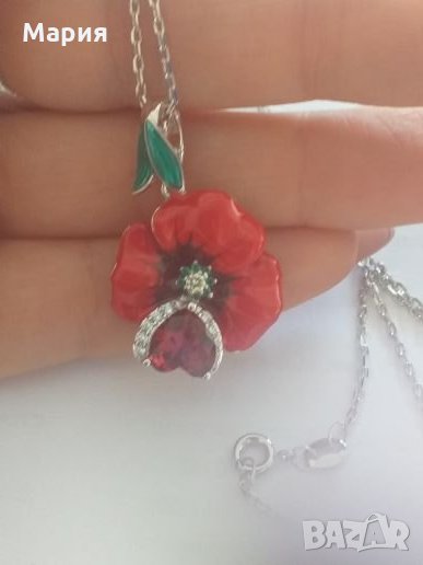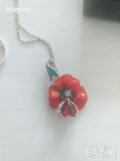 Комплектът включва сребърен синджир, обеци, пръстен във формата на макове. Имам и още един такъв пръстен, по-голям размер.