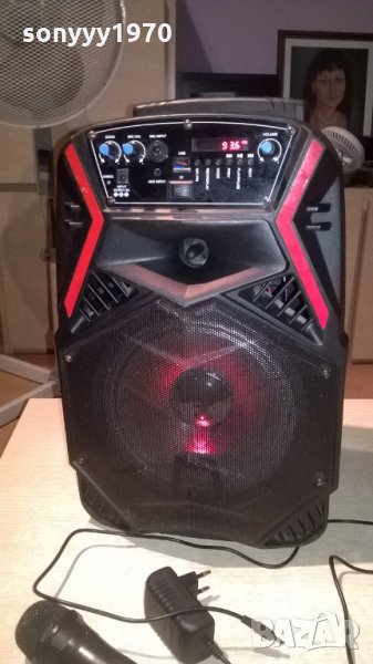 МИКРОФОНА Е ПРИ КЛИЕНТ-жесток звук-яка батерия-има зарядно-свири много здраво на радио или блутут-микс с микрофона и има и дръжка като на куфар-има и аукс-на юсб не работи-от днес 28.02.22г пращаме със спиди или еконт с преглед и тест след превод на капаро за куриерската услуга поради зачестили некоректни потребители-поръчки само тук в саита! по телефона и със смс не! краини цени! бартери не правиме! всеки ден нови неща-още 2-3 наши обяви тук