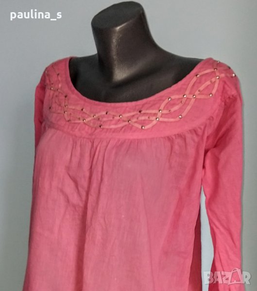 1. L / 2XL - Розова туника от много фин плат с лека прозрачност - памук и лен, с декорирации на деколтето, буфон ръкави. Цената е крайна 29,99лв / 15 евро. Без дефекти и етикет.