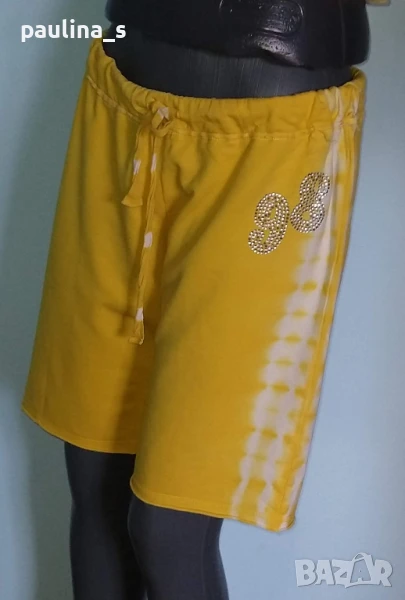 2. L / 2XL - Бермуди. Цената е крайна 19,99лв / 10 евро. Материята е памучно трико с декорация от камъни. Не са нови, но са без дефекти.