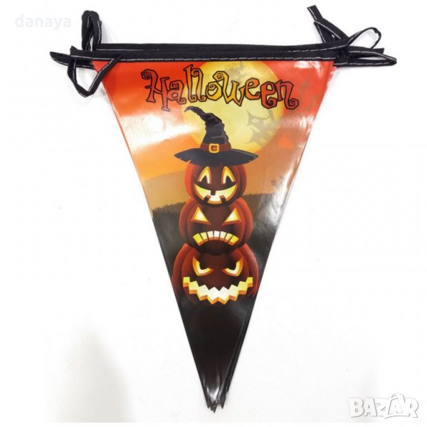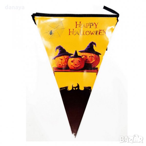 Парти флагчета за Хелоуин. Комплект от 10 броя последователно свързани гланцирани хартиени знаменца на тема Хелоуин. Чудесна парти декорация за стена. Предлагат се в 4 модела.