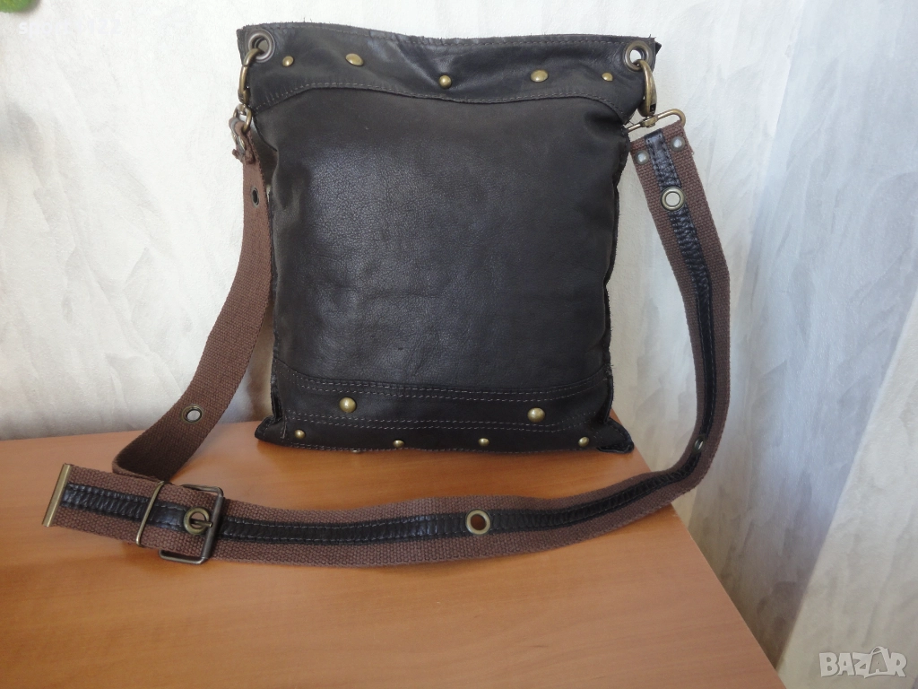 Чанта торба Toi&Moi, бохо стил, естествена кожа, тъмнокафяв цвят, много мека. Ползвана няколко пъти, без никакви забележки. Има едно отделение и един вътрешен джоб, закопчаване с магнитно копче. Произведена в Италия.