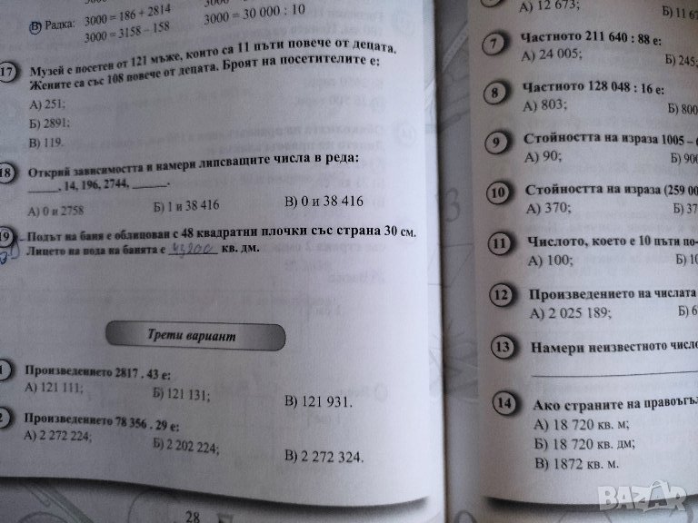 Тестове по математика за 4. клас - Външно оценяване По новия формат, на 3-4 стр.има попълнено с химикал