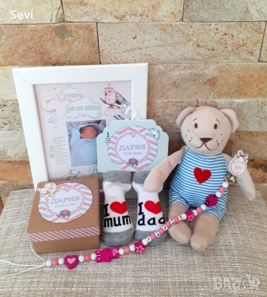 Към комплекта може да се добави по избор плюшено мече, чорапки, подаръчна кутия с име. За повече информация може да посетите и харесате страницата ни във фейсбук: Клипс за залъгалка
