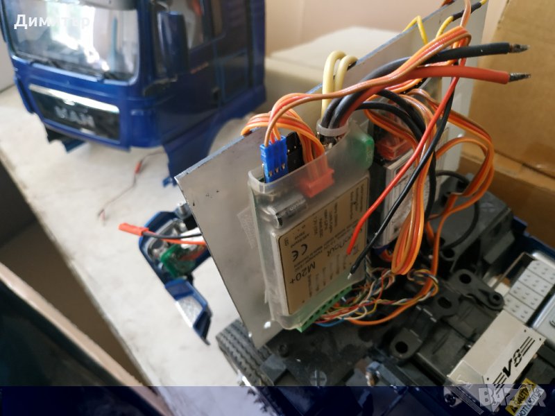 Ел.двигател ,серво за завиване ,серво за смяна на скоростите.