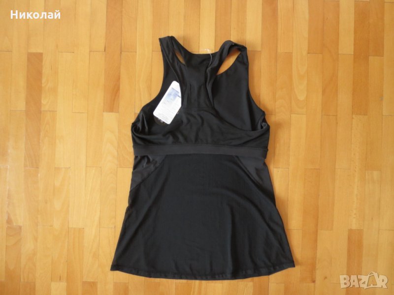 Чисто нов е. Много лека материя. Вграден вътрешен спортен сутиен с подплънки на гърдите за максимален комфорт при употреба, които се махат при необходимост. UPF25+ слънцезащитен фактор на материята