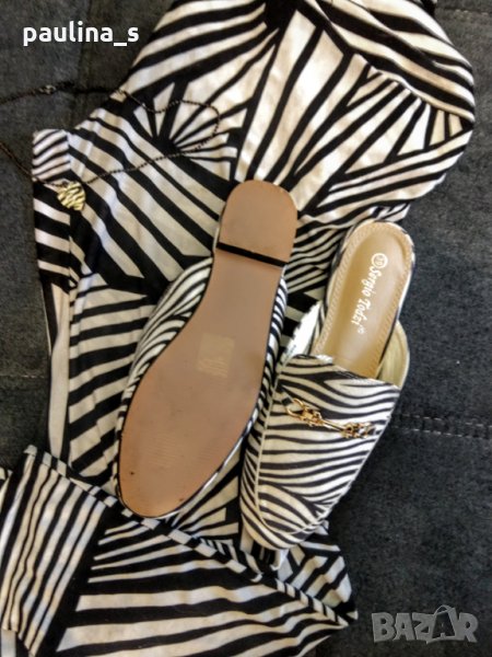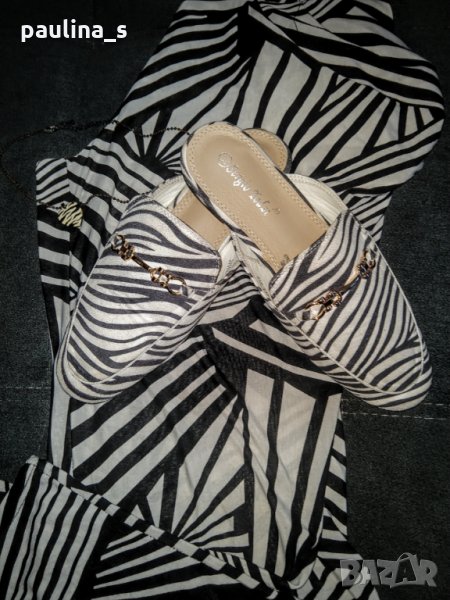 Поради новите правила за заплащане на обновяванията на обявите, моля разгледайте и последните страници на профила ми, обявите са активни и евтини. Комплект от нови италиански чехли от артифициален велур и естествена кожа - ходило, в зебра принт и долнище. Долнището е от ликра и е носено, но няма дефекти. Поради модела и голямата еластичност, покрива няколко размера до 2XL, но като клин. Не се делят! Чехлите са изумително елегантни - зебра принт. Цена 39,99лв / 38-39 номер Стелка 26см Клин(долнище) - зебра принт. Цена 9,99лв